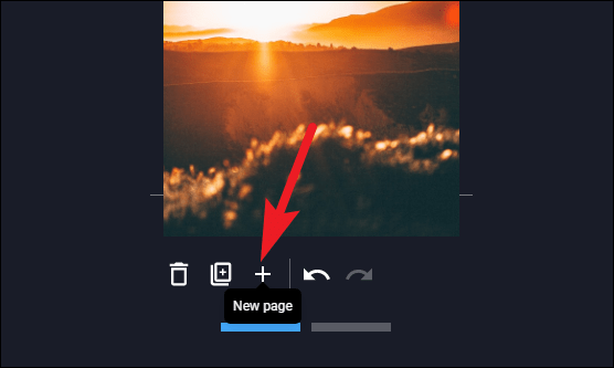 To add a new page to the story, click on the ‘+’ icon from the toolbar below the page editor. This toolbar also has other editing options like ‘Delete page’, ‘Duplicate page’, ‘Undo’, and ‘Redo’.