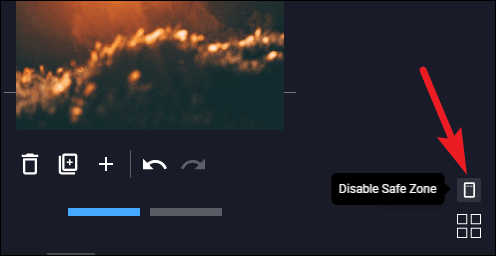 The editor also has a button to enable and disable safe mode. Keep the safe mode enabled and to make sure that your content is visible across most devices, keep important information inside the safe zone.