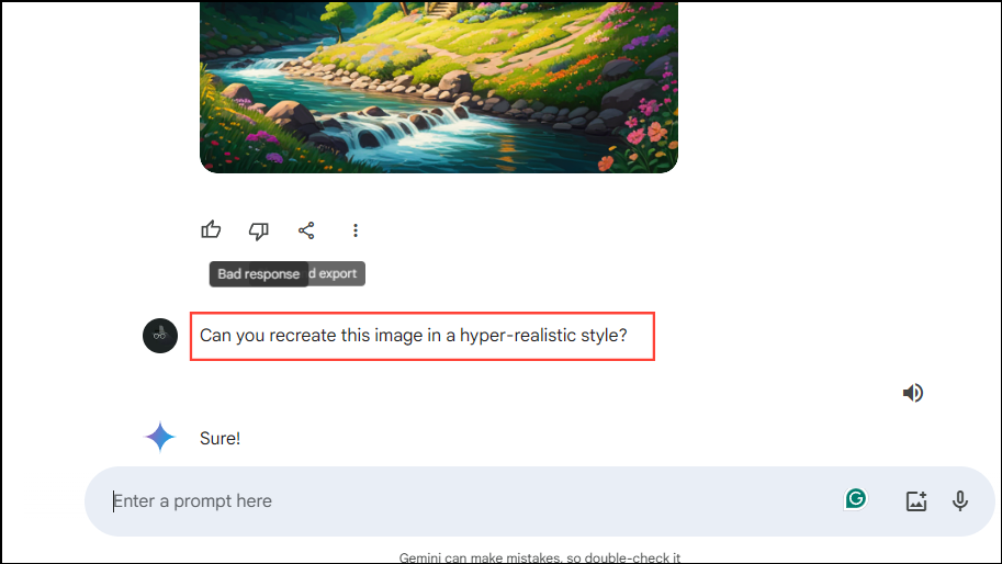 - Press Enter again and wait for Gemini to recreate the image.
