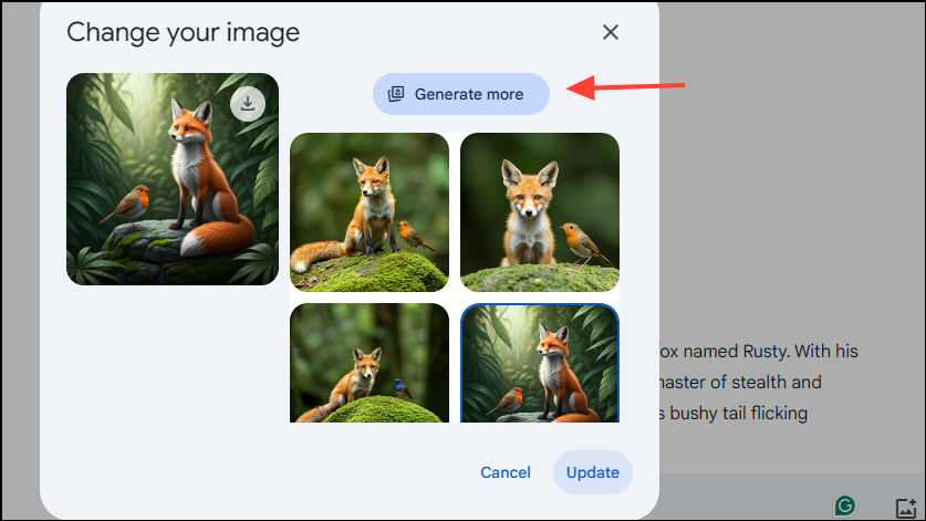 - You will see more images you can select from. Click on an image to select it or click on the 'Generate more' button to generate more images.