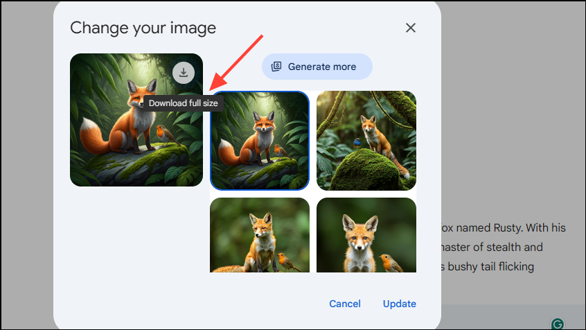 - You can download generated images by hovering your cursor over the image you want to download and clicking on the 'Download full size' option on the top right.