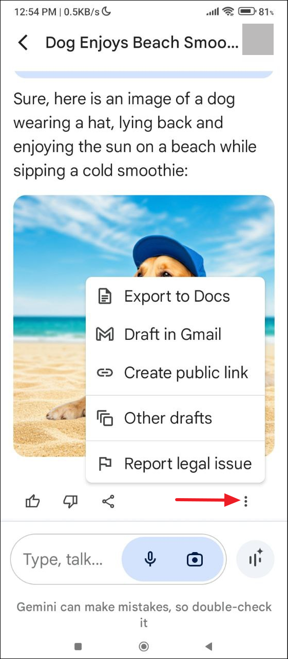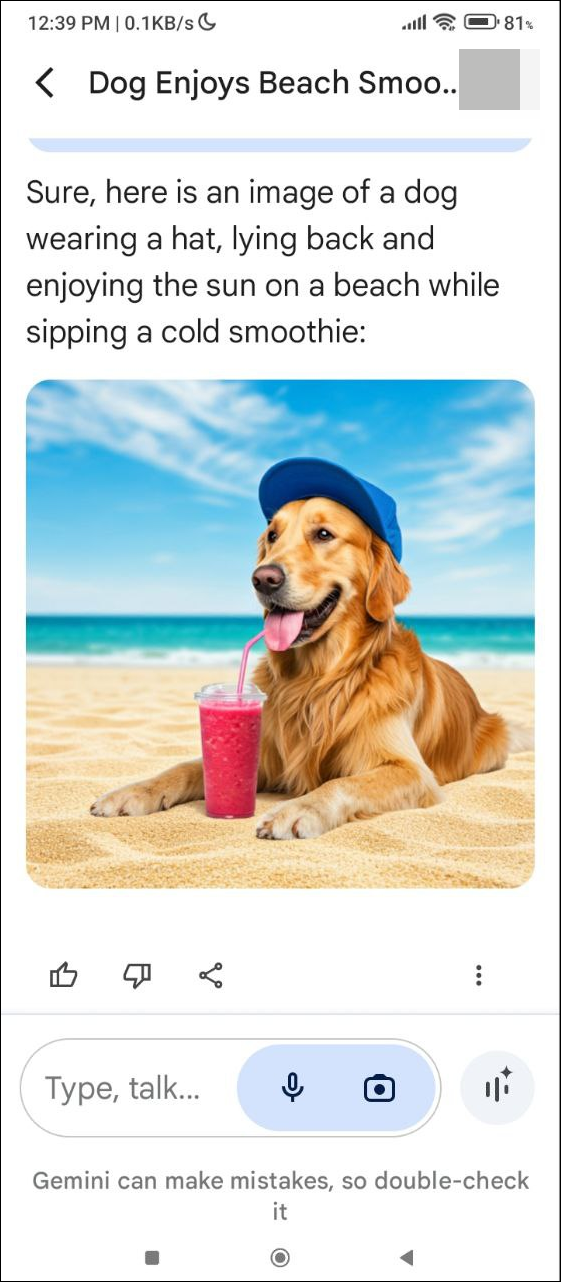 - Wait for Gemini to generate your requested image. You can tap on the generated image to view a larger version of it.