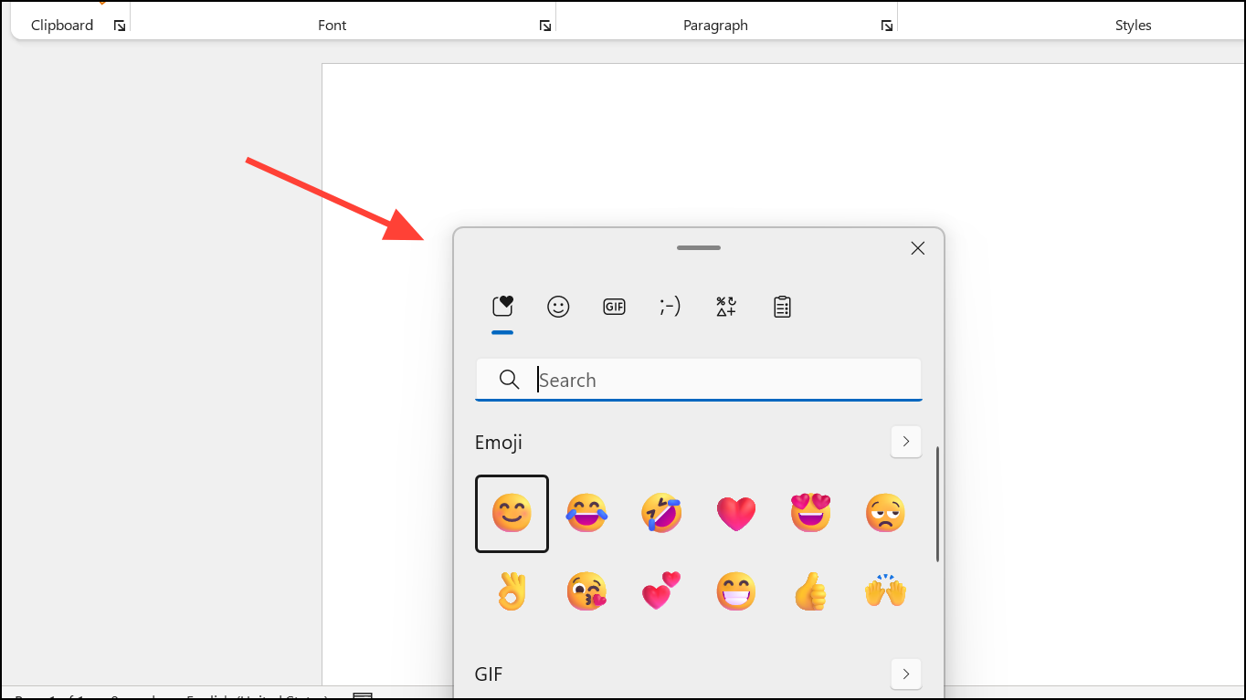 Step 3: Browse through the categories, use the search box to type a keyword (like “smile” or “heart”), or scroll to find the emoji you want. Click on the emoji to insert it into your text.