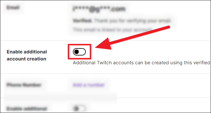 Enable Additional Account Creation on Twitch With a Verified Email Address