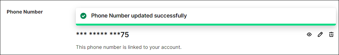 If the account is reusable — for multiple accounts, you will receive a ‘Phone Number updated successfully’ notification. And your phone number is successfully verified. You can now enable the feature to use and link multiple accounts to the verified phone number.