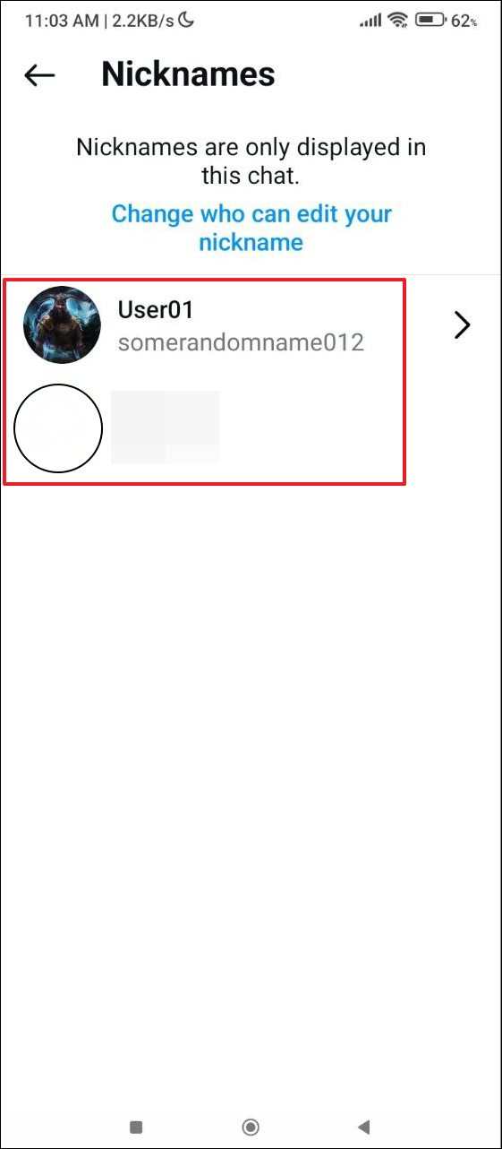 - When you create or change your or someone else's nickname, it will only show up in the chats where it has been changed. This means they won't be visible in other chats.