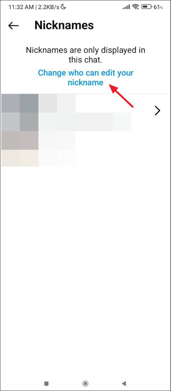 - To change who can edit nicknames, tap on 'Change who can edit your nickname' at the top.