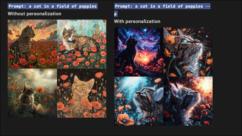 Midjourney's new Personalization feature relies on a parameter (--p). This is a setting that lets users apply their unique artistic styles to the images generated by the AI model. You will need to toggle the --p parameter before you can personalize the images you want the platform to generate. Then you will be able to stylize them with vibrant and bold colors, muted and subtle tones, or other elements.