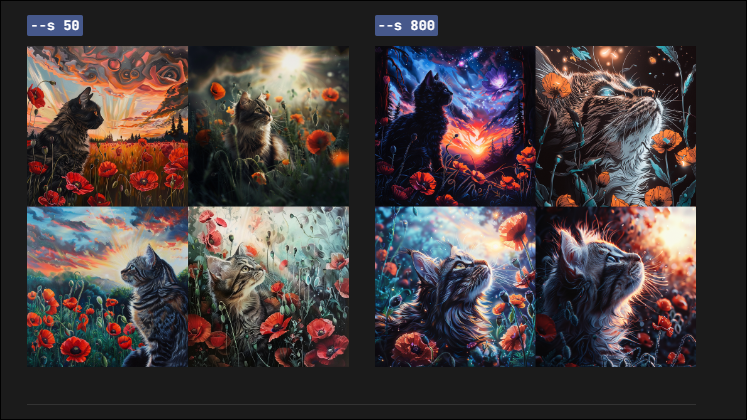 Stylize Parameter: The Stylize parameter controls how much the default image sensibilities built into Midjourney affect the generated image. You can make adjustments to this parameter and choose whether you want the image to more closely follow the default style or your personal preferences. To use the Stylize parameter, add --s to your prompt and you can set it to any value between 0 and 1,000. The default value is 100.