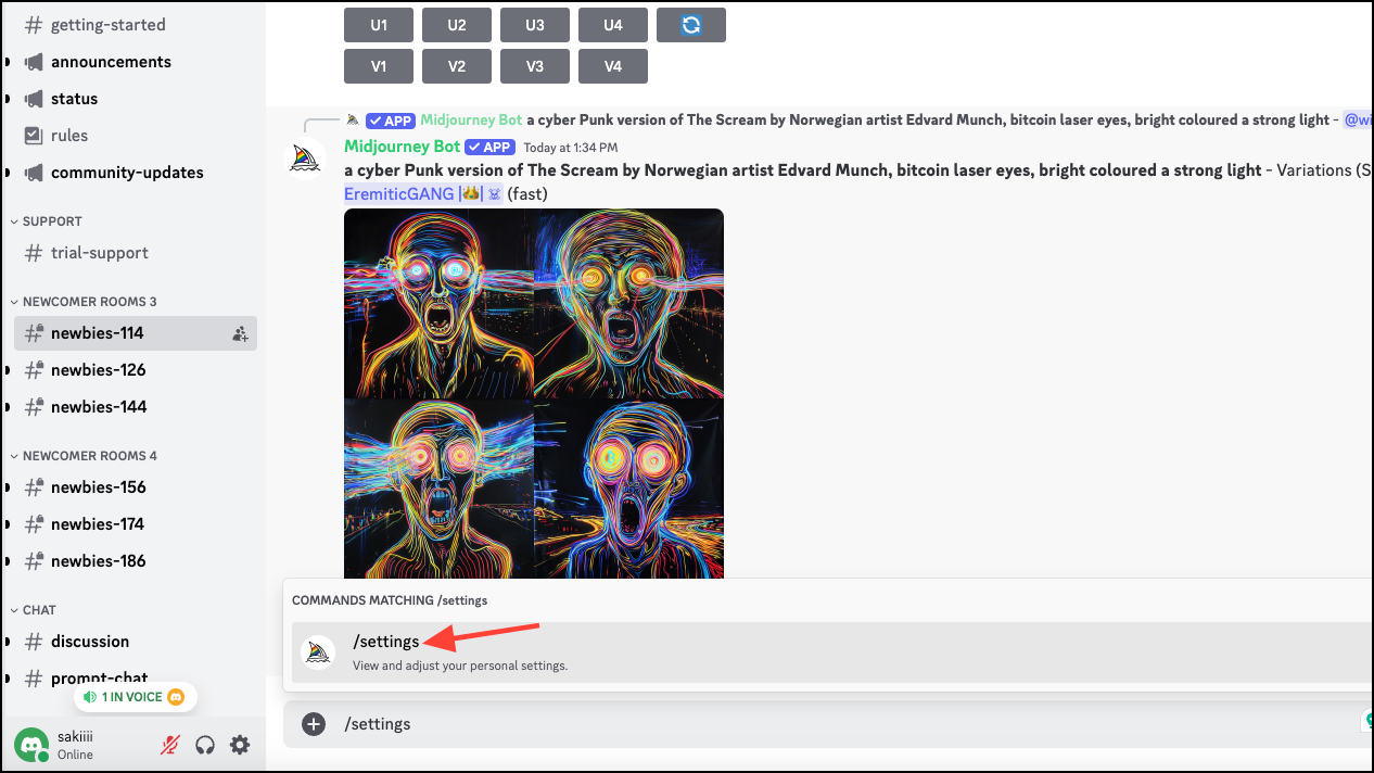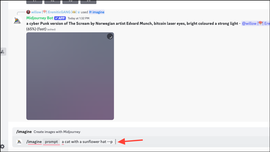 - If you're using Midjourney on Discord, log in to your account, go to the Midjourney server and go to a channel where you can generate images.