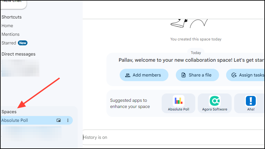 To create polls with the Absolute Poll app, you must be signed in to Google Chat using your Google account. Setting up the app is quite easy and can be done in both individual chats and Spaces with multiple members. For this guide, we'll be demonstrating the process using Spaces, but it's the same for both.