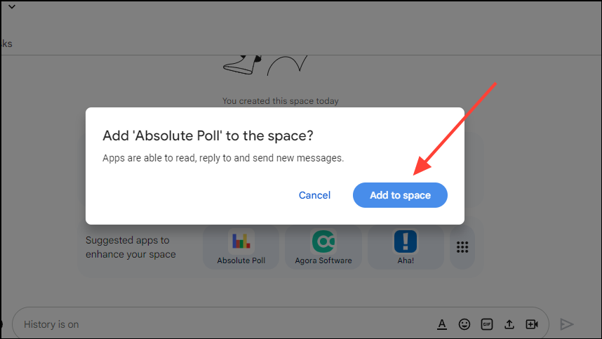- With the Space selected, you will see a few suggested apps that you can add to the Space. Click on the Absolute Poll app to add it.