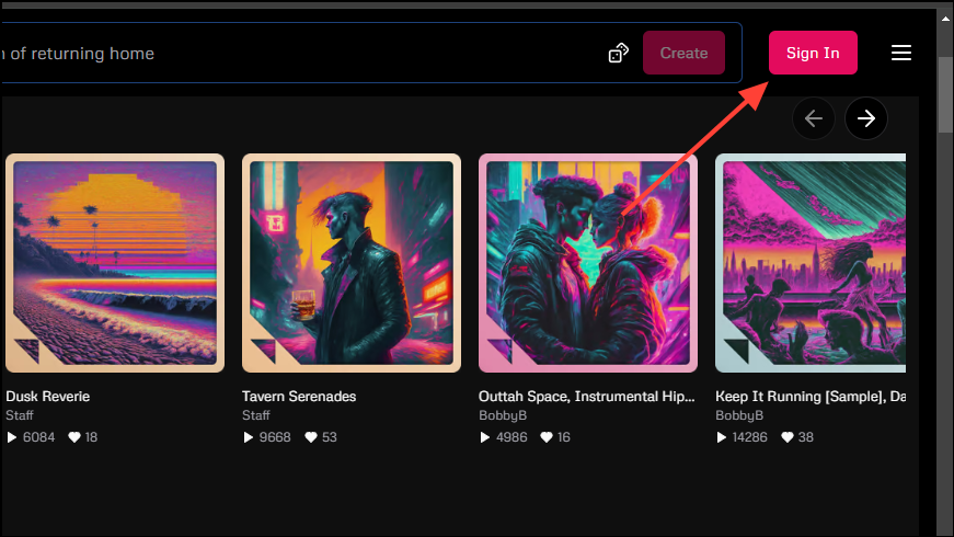 - Visit the Udio website and click on the 'Sign In' button on the top right.