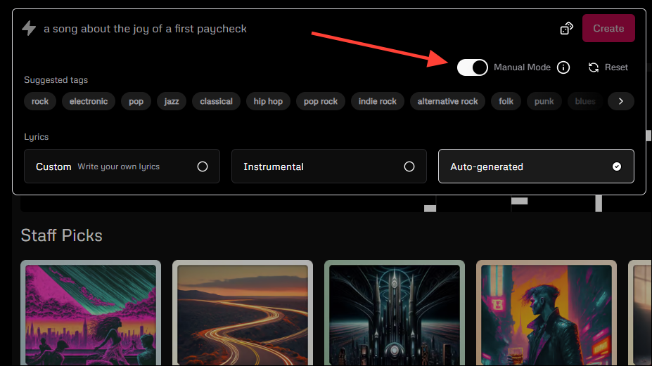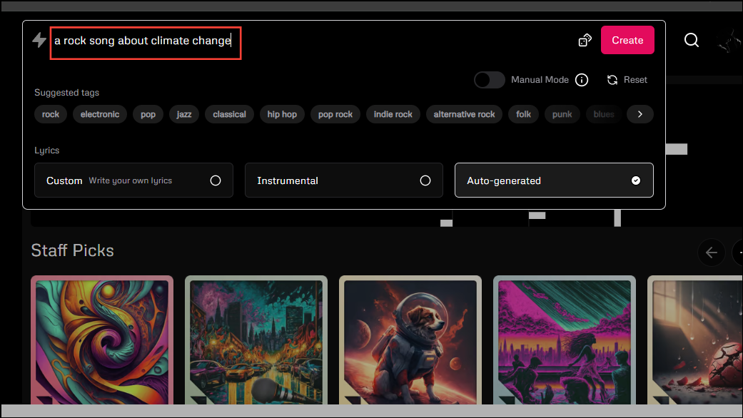 By default, prompts you enter into Udio undergo a lot of post-processing to improve them and make them easier to understand for the AI model. However, if you want greater control over the music generation process, you can try out the 'Manual Mode'.