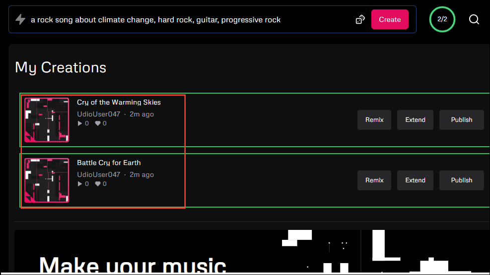 Now, you're all set to start making music with Udio. Just follow these steps, and you'll have some realistic-sounding songs in no time.