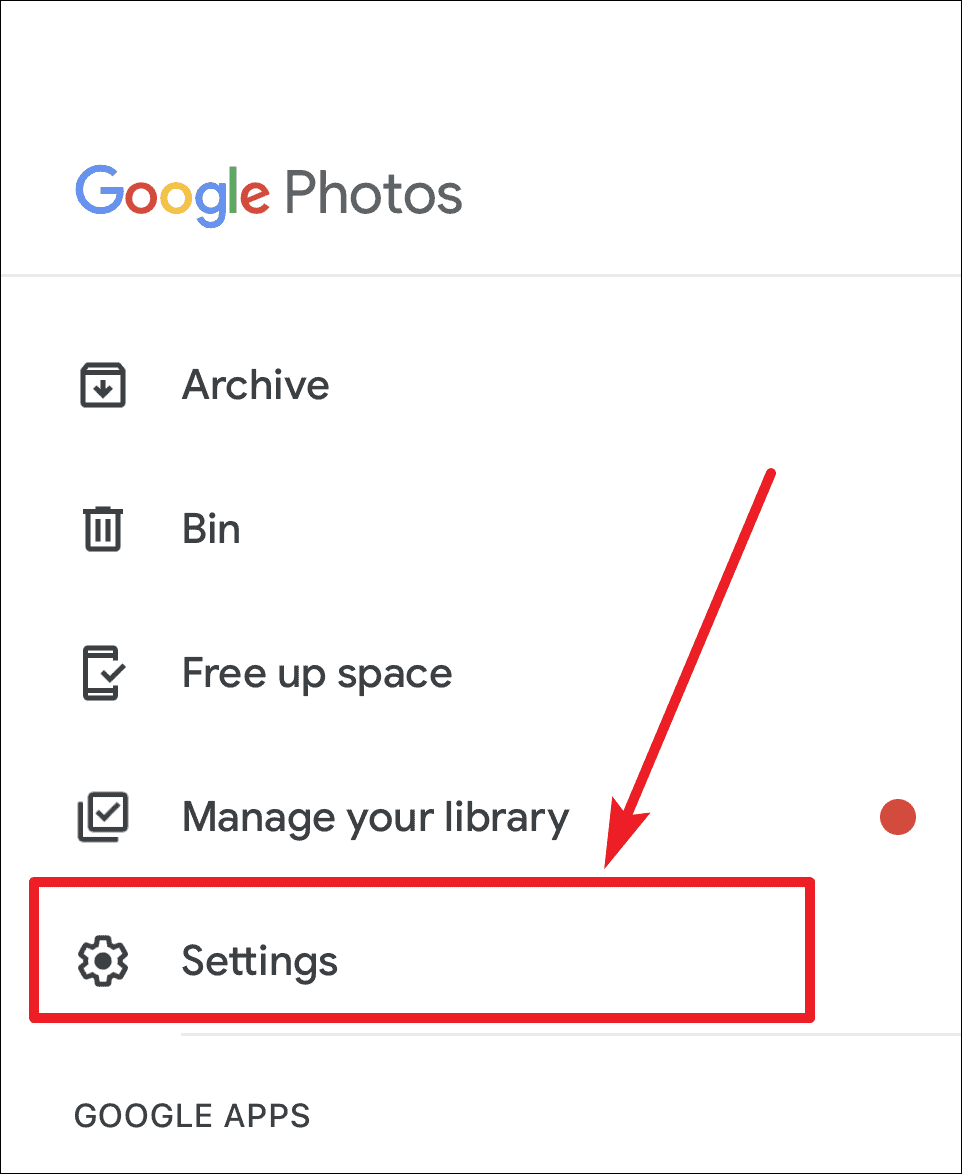 In the menu, tap Settings to access Google Photos settings.