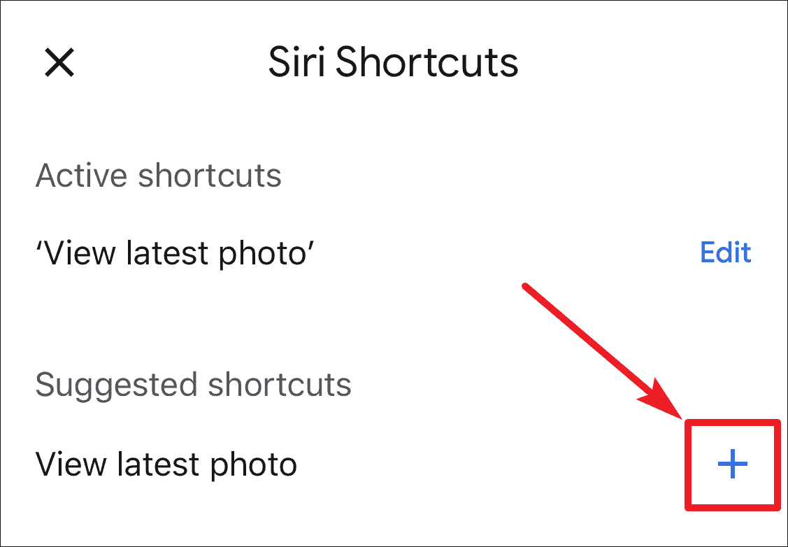 Tap the ‘+’ icon next to the suggested shortcuts.