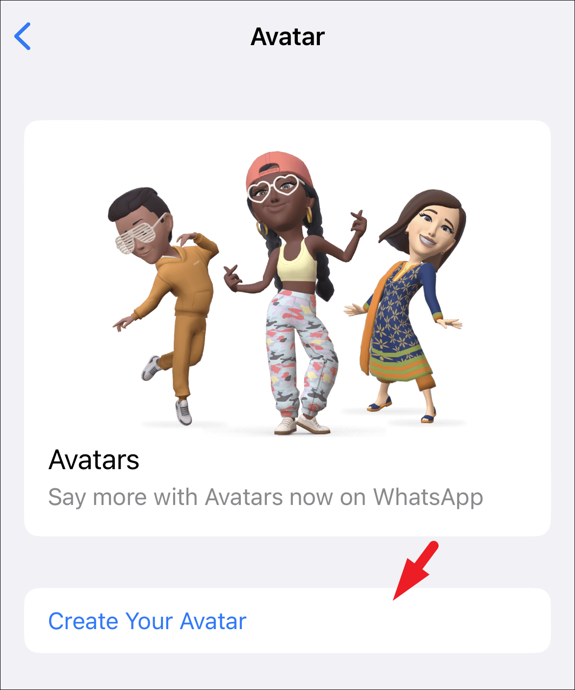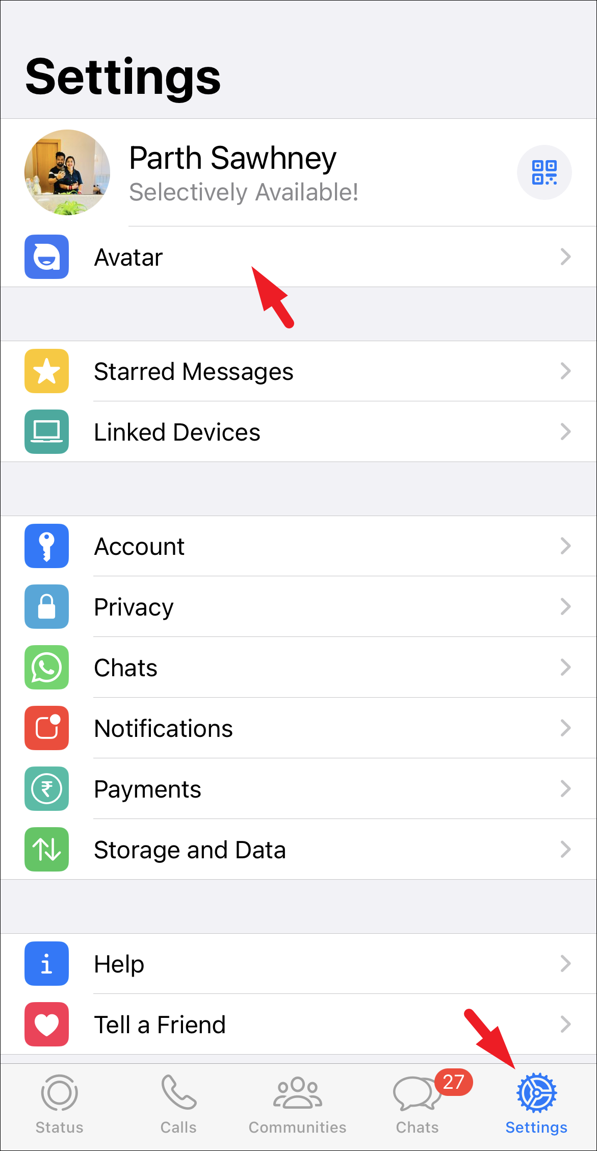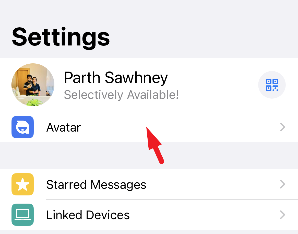 If you wish to set the avatar as your profile photo, head to the ‘Settings’ page on WhatsApp. Then, tap on the ‘Avatar’ option to continue.