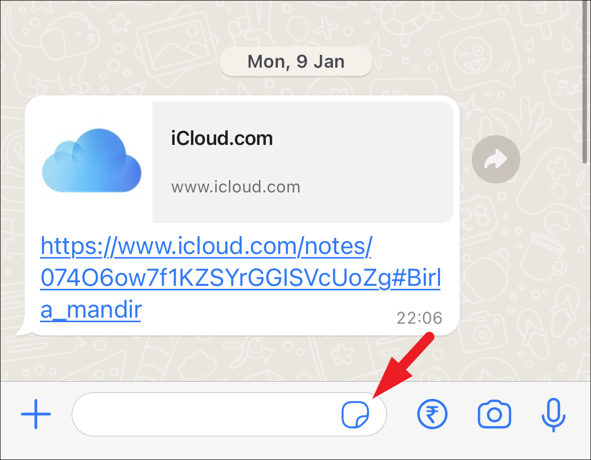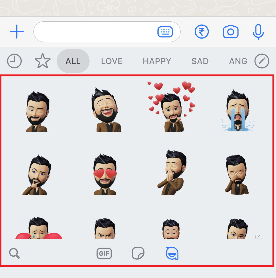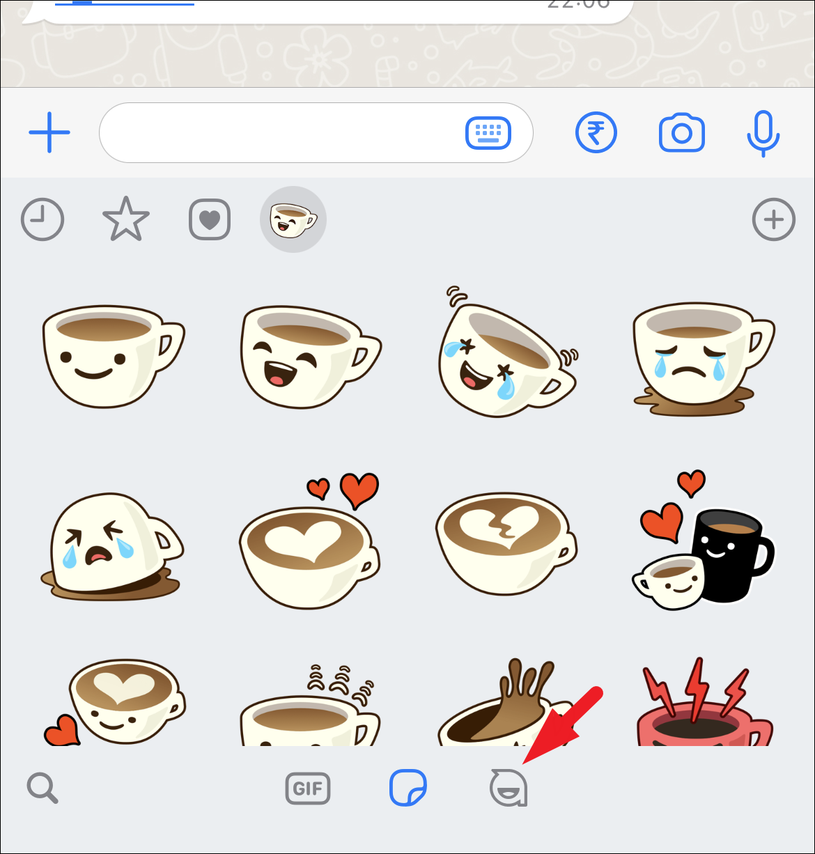 To share avatar stickers, from the chat screen, tap on the ‘Stickers’ icon.