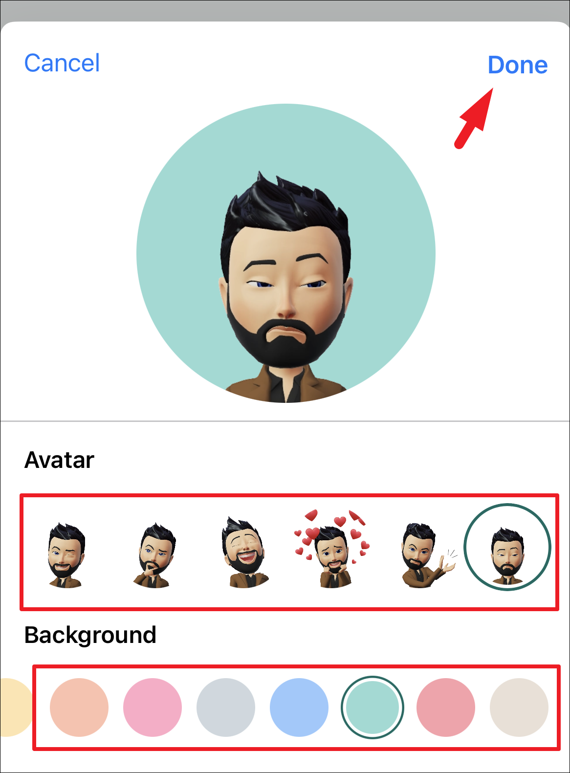 Next, you can choose a pose from the available options and then select a background by tapping on one of the options. Finally, tap on the ‘Done’ option to apply the profile picture.