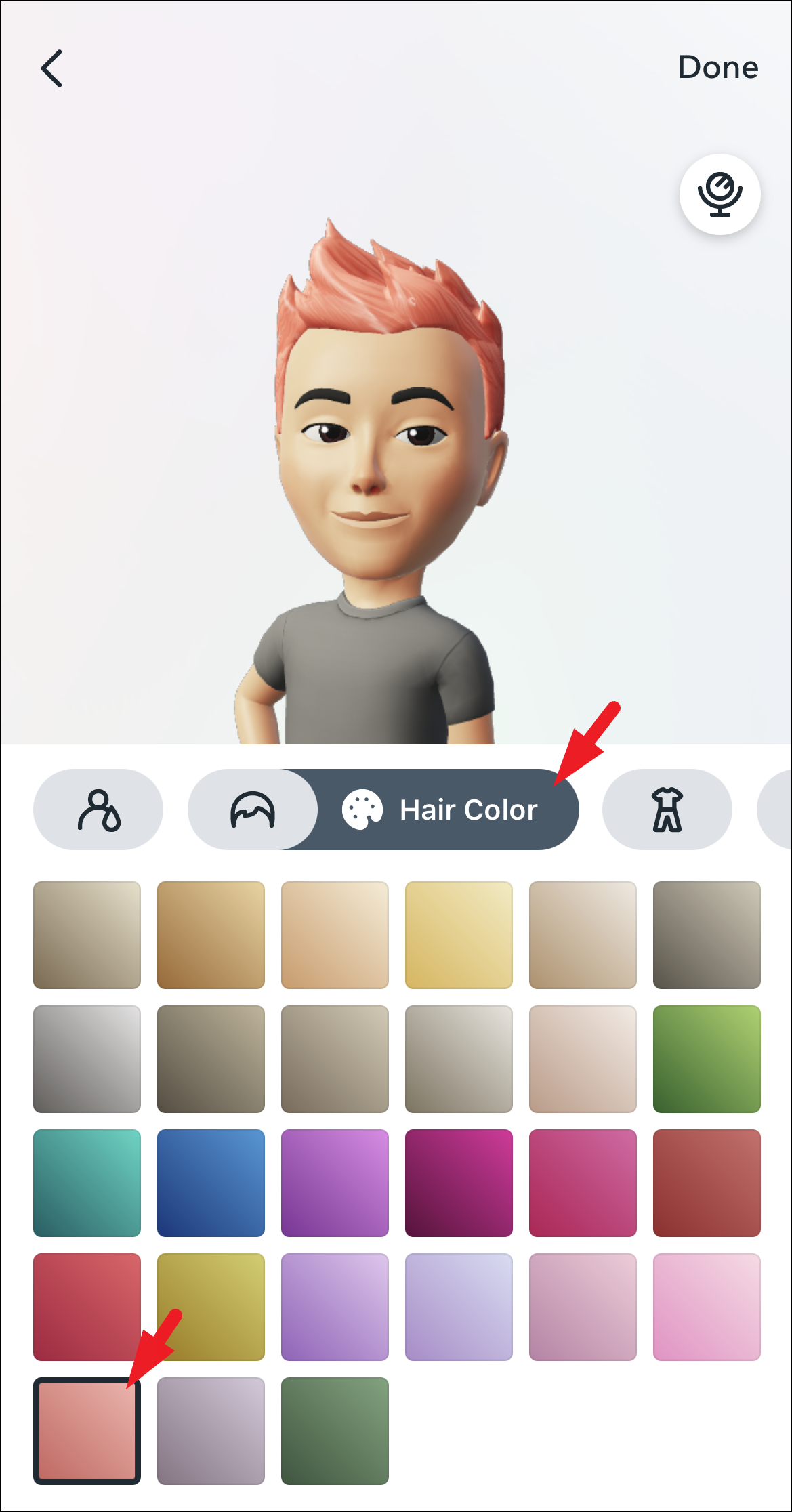 You can also change the hair color by tapping on the ‘color palette’ icon.