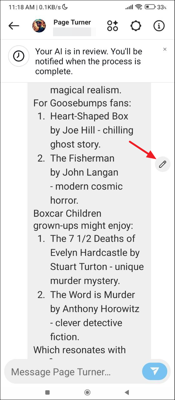- You can also edit and improve your AI's responses by tapping on the pencil icon on the right of a response.