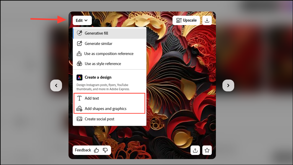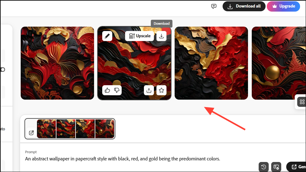 - You can also upscale the image by clicking on the 'Upscale' button on the right.