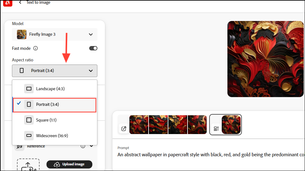 - When generating images in Adobe Firefly, you get a lot of customization options. For instance, you can change the aspect ratio to match that of a smartphone screen by clicking on the 'Aspect ratio' dropdown menu on the left and selecting 'Portrait'.