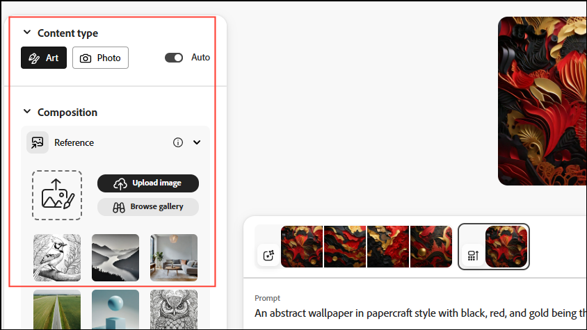 - Scroll down and you can choose whether to generate the image in the form of art or as a photo. Further down, you can select from various references that the AI model will use when generating the image.