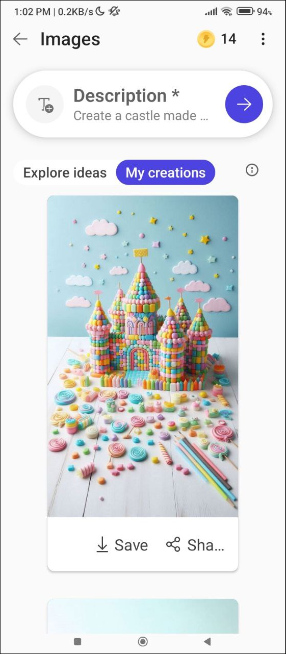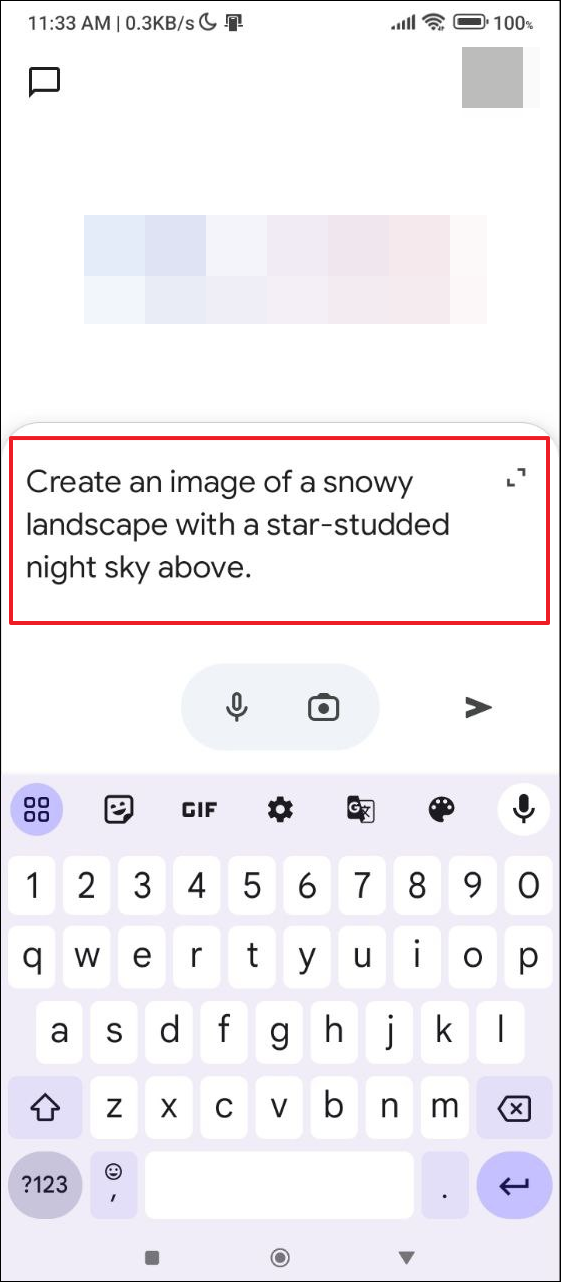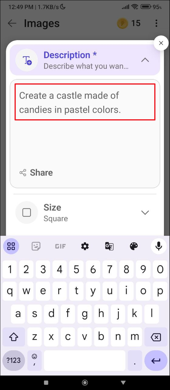 - Now tap in the description box and describe the image you want to generate, such as