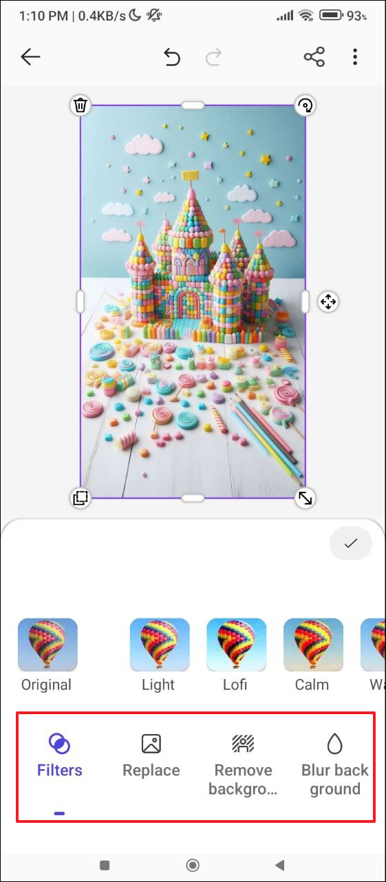 - Tap on the image again and you can apply filters, remove the background, crop the image, and perform other edits. This makes Designer a very powerful tool for generating images using AI.