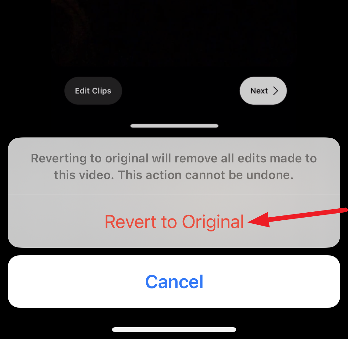 If you want to get the original video back at any time, tap ‘Edit’ again to open the editing tools. Then, tap ‘Revert’ in the bottom-right corner of the screen.