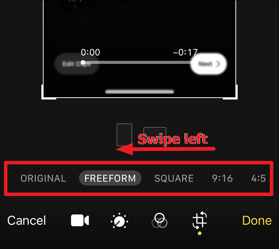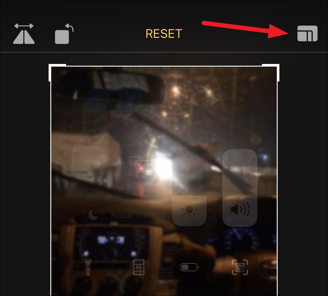 If you want to use any preset aspect ratios like Square, 9:16, etc., tap the ‘Aspect Ratio’ button in the upper-right corner of the screen.