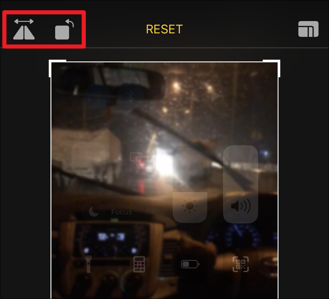 There are also some other tools available at your disposal on the crop screen. At the top-left corner of the screen, there are two tools available. The first is the flip and the second is rotate. As the name suggests, you can use the flip tool to flip the video, i.e., mirror it, and the rotate tool to change its orientation.
