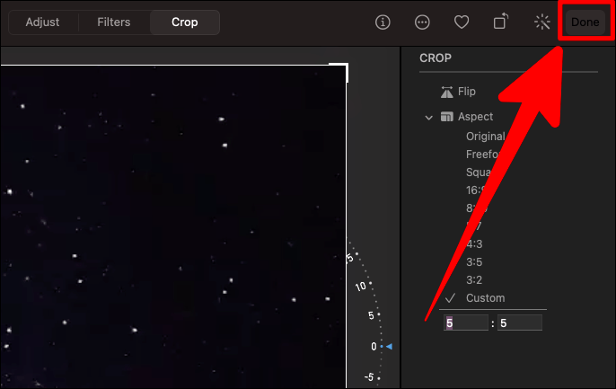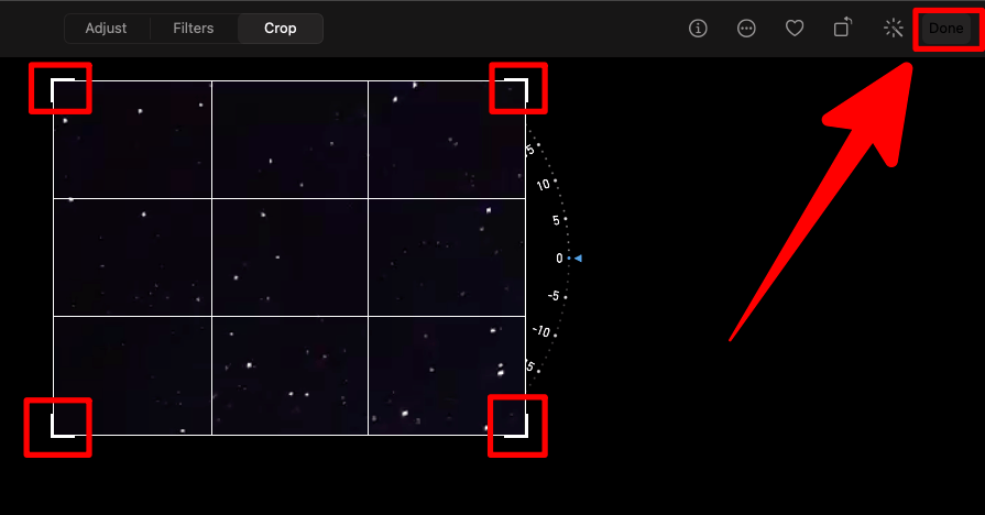 There would be three tabs at the top of the editor screen; Adjust, Filters, and Crop. Click on the ‘Crop’ tab.