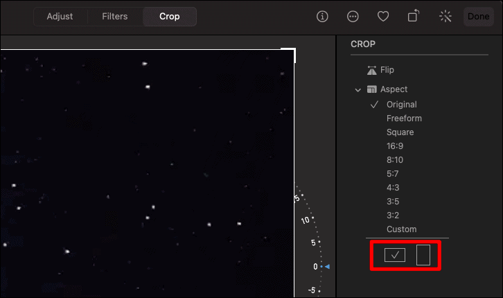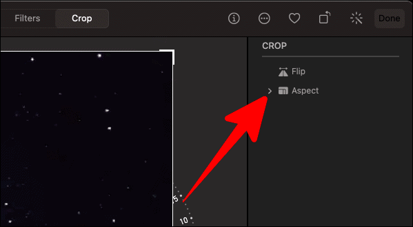 In the ‘Crop’ window, there would be two options under ‘Crop’ on the right side; ‘Flip’ and ‘Aspect’. Click on the ‘Aspect’ option.