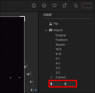 If you want to customize your cropping dimensions and not stick to the ones that are given, start by clicking on the ‘Custom’ option under ‘Aspect’. Below the custom option, add your own dimension ratio.