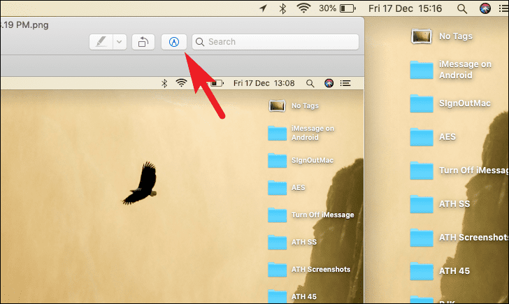 To annotate a picture, click on the ‘Show Markup toolbar’ button to bring up the markup toolbar. Alternatively, you can also press the Shift+Command+A shortcut on your keyboard to do so.