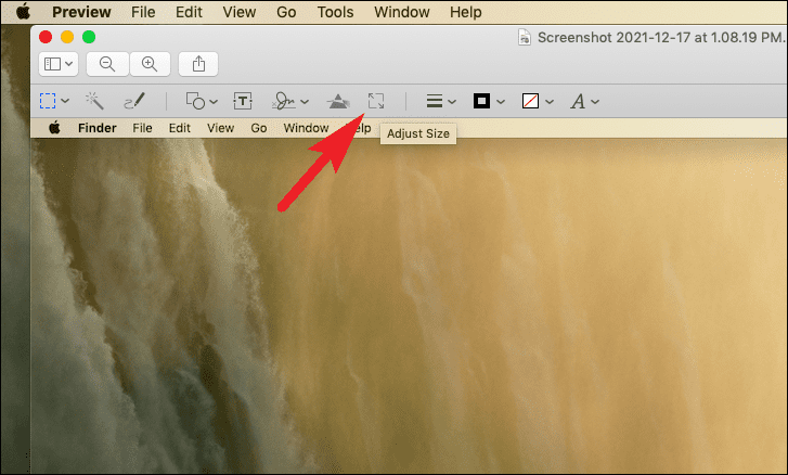 To resize an image, from the markup toolbar, click on the ‘adjust size’ button. This will open a separate window pane on your screen.
