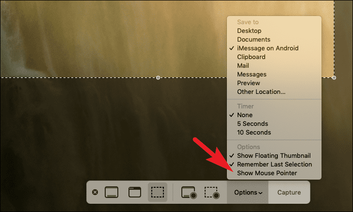 Similarly, by default, the mouse pointer is not visible in the screenshots you take on your Macbook. If the need arises, you can always enable it by clicking on the ‘Show Mouse Pointer’ option.
