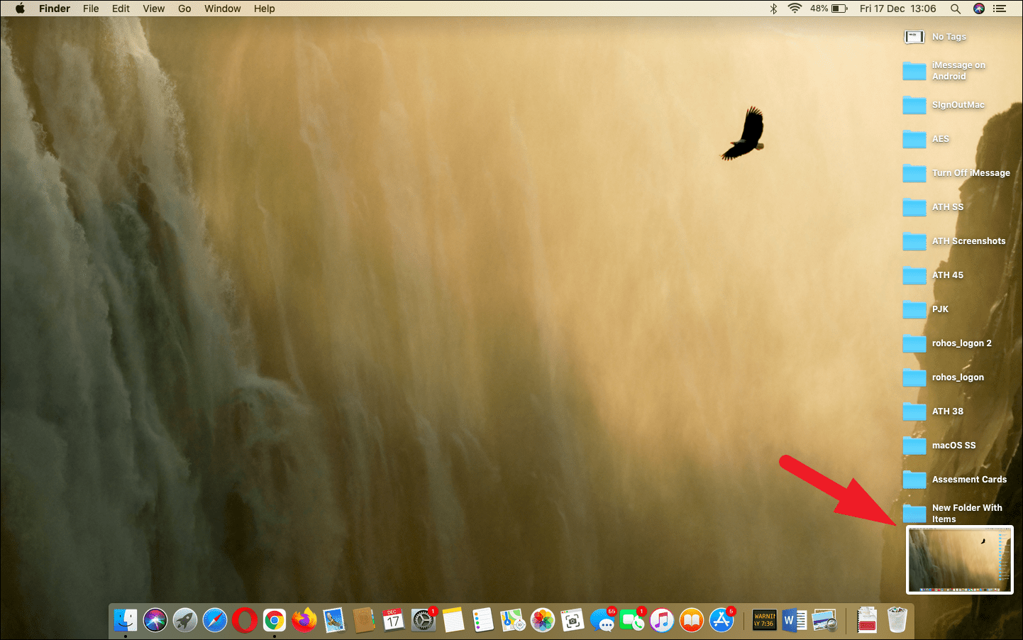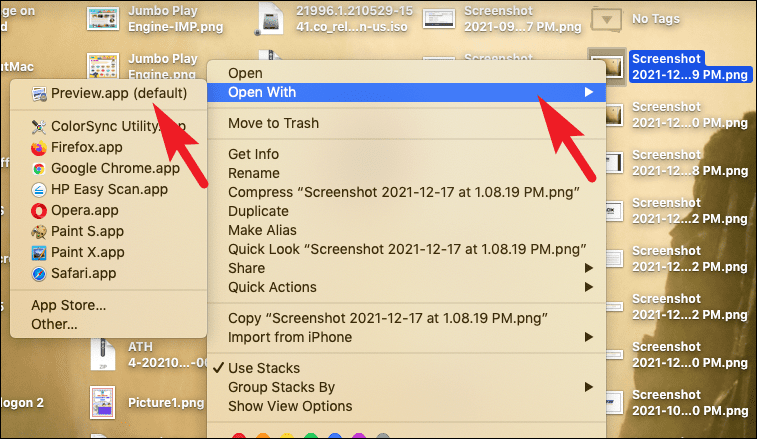 To open your screenshot in the Preview app, right-click on the screenshot thumbnail and hove over the ‘Open with’ option and then select the ‘Preview’ option from the list.