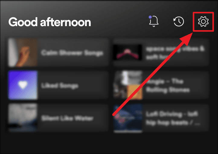 - Open Spotify on your phone and tap the ‘Settings’ icon (gear icon) at the top right corner of the screen.