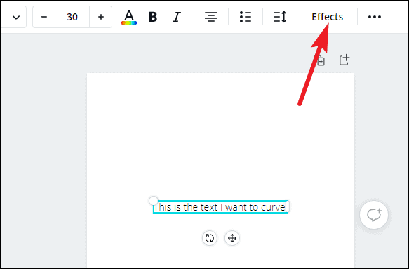 When you select an element, another toolbar will appear on top of the design with editing options specific to that element. Go to that toolbar and click the ‘Effects’ option.