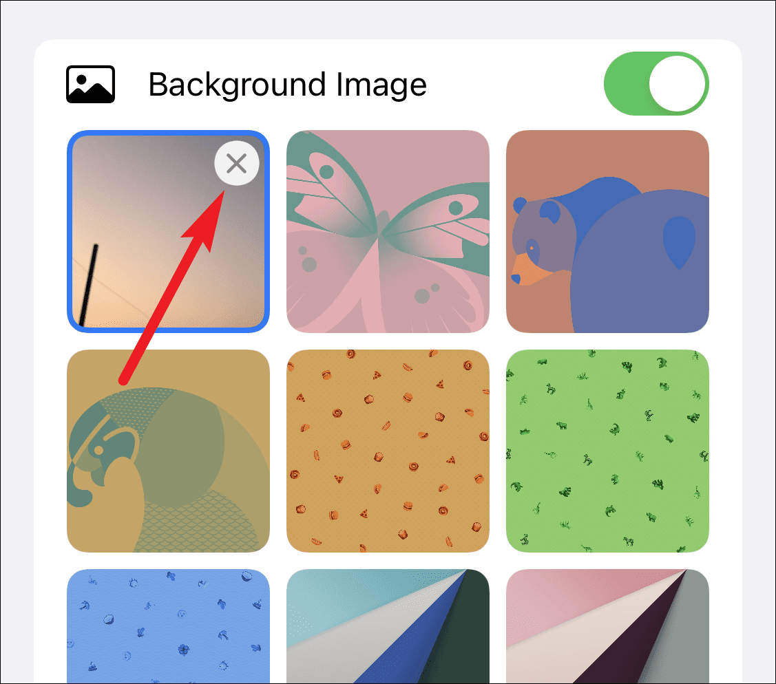 To stop using the background, turn off the toggle for ‘Background Image’.