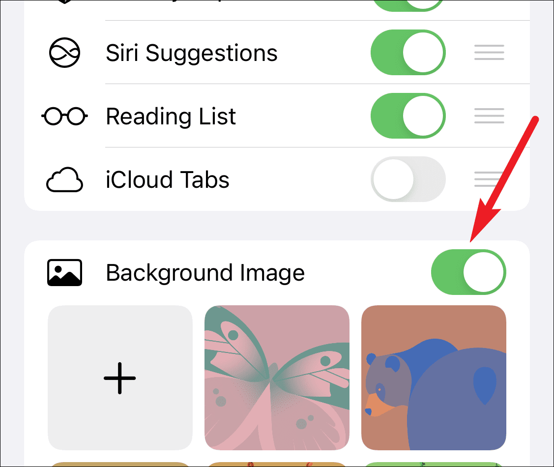 - Background Image: A background image for the Safari Start Page. You can choose a custom image from your Photos app or use one of the provided images.