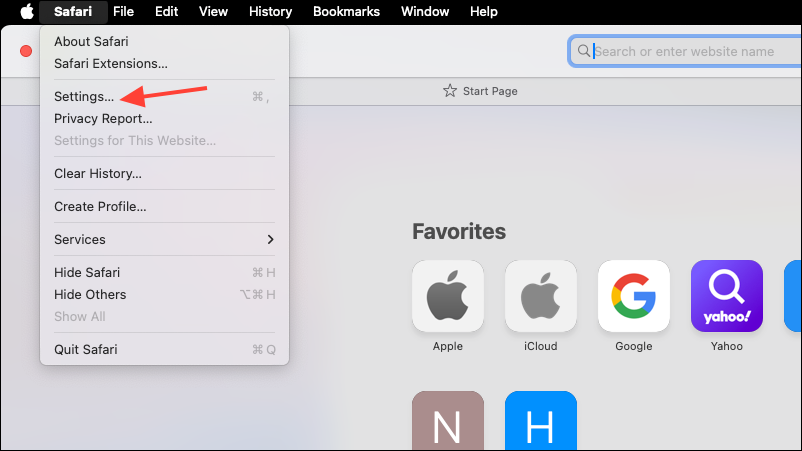 Step 2: From the menu bar at the top, click Safari > Settings (or press Command + ,).