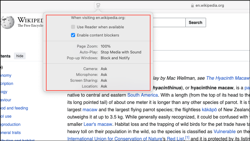 Step 2: Once Reader mode is active, you can customize your viewing preferences. Click the "Website Settings" option available in the Reader mode toolbar. Here, you can choose whether Safari automatically activates Reader mode for the current website, manage content blockers, adjust zoom levels, and control pop-up window behavior.
