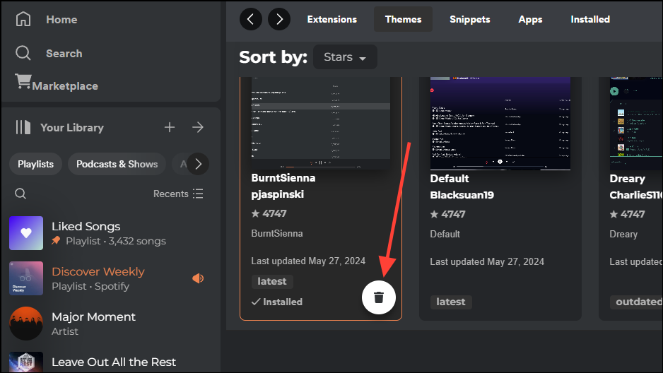 Themes allow you to change the look and feel of the Spotify app, and the Spicetify Marketplace offers numerous options you can choose from.