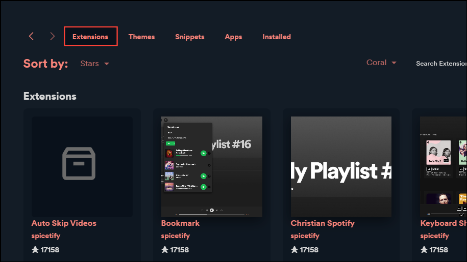 - The Marketplace lists all the extensions, themes, snippets, and apps you can install to customize the music streaming app as per your preferences. Click on the 'Extensions' tab to get started.