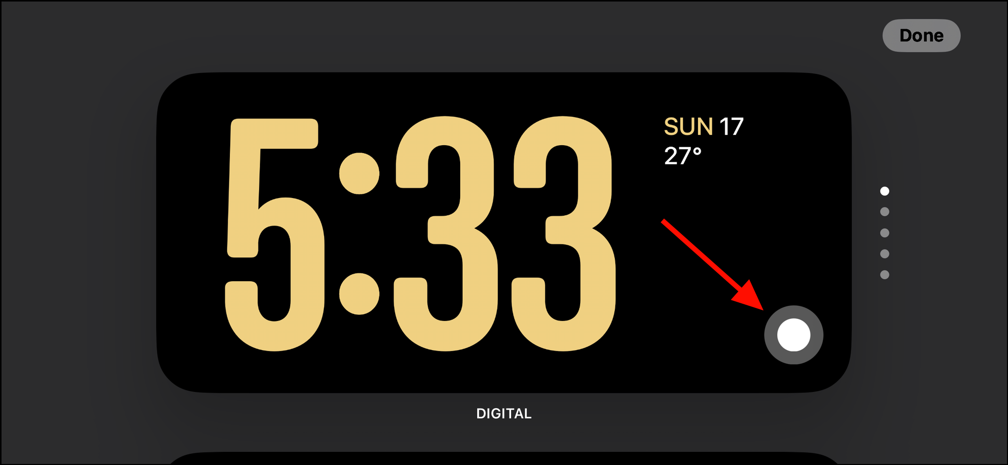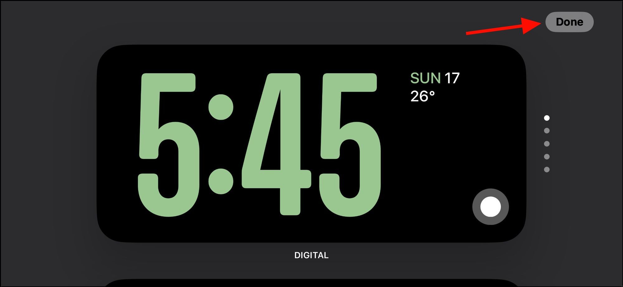 Once you have personalized the clock style and color, confirm your selection by tapping on the clock or pressing the 'Done' button located in the upper right corner. This will establish your chosen style and color as the default clock on the Standby screen.
